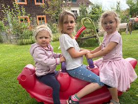 Am Nachmittag stand ein besonderes Highlight auf dem Programm: Nach einer kleinen Wanderung erreichten wir die bereits vertraute Scheune – ein Ort voller Erinnerungen und Spannung. Die Kinder machten sich begeistert auf die Suche und wurden auch dieses Jahr fündig: Die Schatzkiste wurde entdeckt! Mit der neu eroberten Seifenblasen Maschine wurde der restliche Nachmittag in bunter, fröhlicher Stimmung gefeiert.